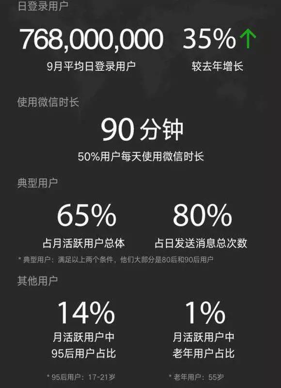 我们先来看一组微信数据统计:
